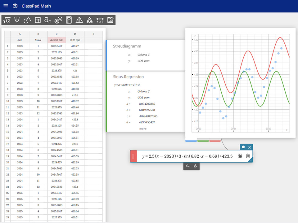 Das digitale Angebot ClassPad.net umfasst eine komplette Lernplattform für Unterricht und Selbststudium, mit – unter anderem – CAS, Tabellenkalkulation und Statistik, Geometrie und Grafik. Es läuft auf sämtlichen digitalen Endgeräten, lässt sich in Lernmanagement-Systeme integrieren und kann Handschrift lesen.