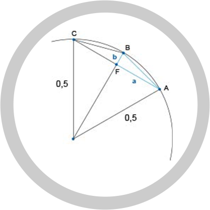 Dazu ist nur der Satz des Pythagoras nötig: Mit seiner Hilfe lassen sich die Kantenlänge und damit der Umfang des Zwölfecks berechnen. Im nächsten Schritt wird wieder die Zahl der Ecken verdoppelt und der Umfang berechnet usw..