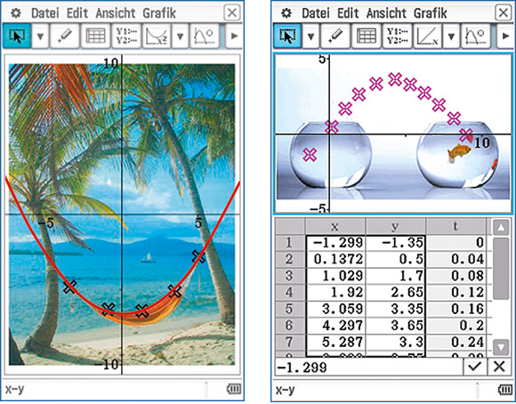 Diese Anwendung eignet sich für die mathematische Analyse von Fotos und Videos. Durch das Einzeichnen von Hilfspunkten können z. B. Regressionen durchgeführt oder Funktionen experimentell gefunden werden.