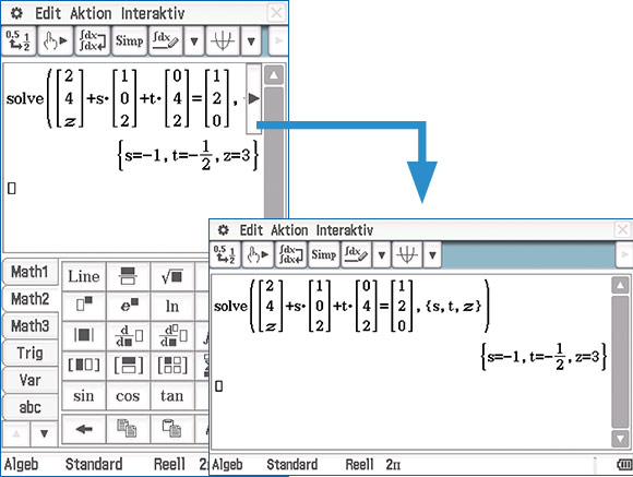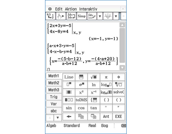 Die Funktionen der Software-Tastatur sind sinnvoll angeordnet. Der integrierte Formeleditor erlaubt die Eingabe von Termen und Gleichungen in natürlicher Schreibweise: Ein- und Ausgabe sehen aus wie im Mathematikbuch.