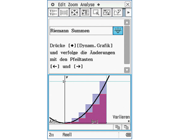 Die Eingabe per Stift oder Finger erleichtert das Arbeiten mit dem ClassPad II. Grafiken können mit dem Finger aufgezogen werden. Durch das berührungssensitive Display lässt sich Drag & Drop ganz einfach nutzen, um Funktionen darzustellen.