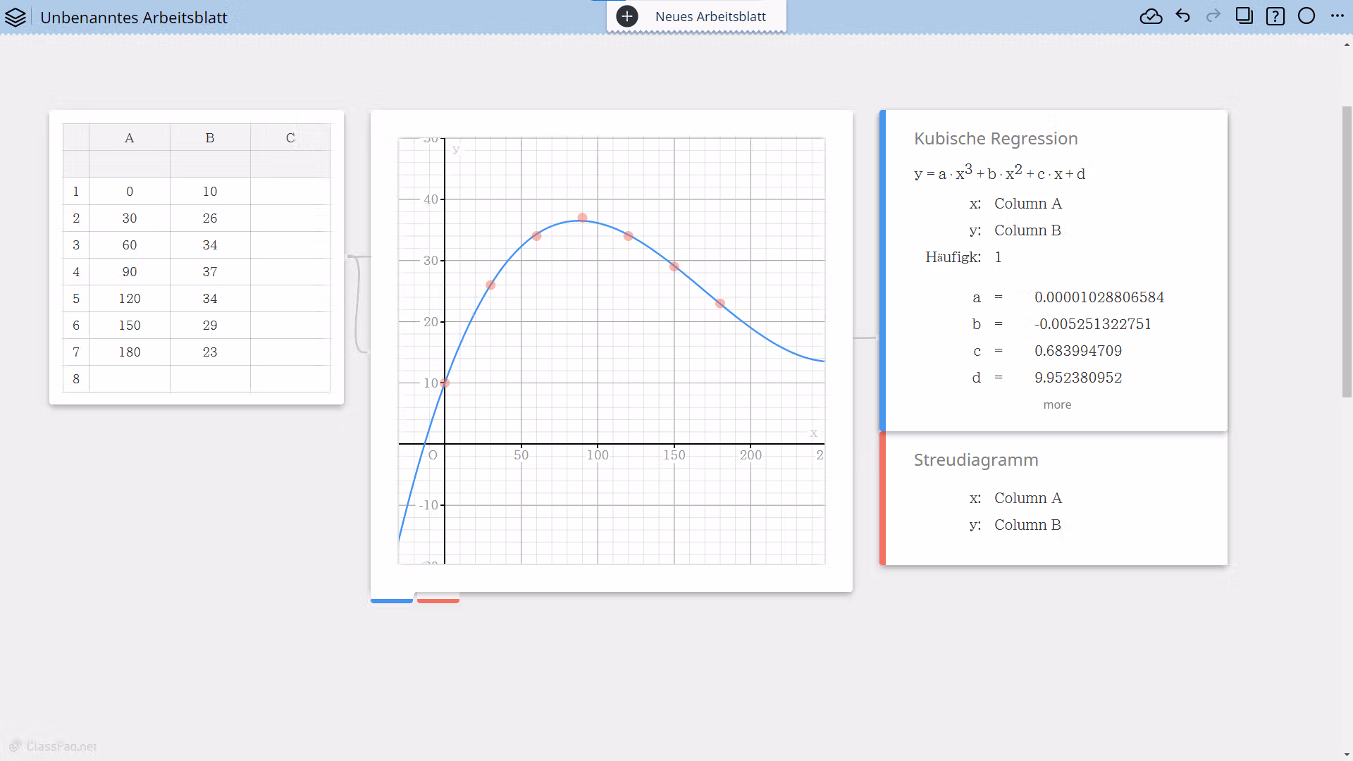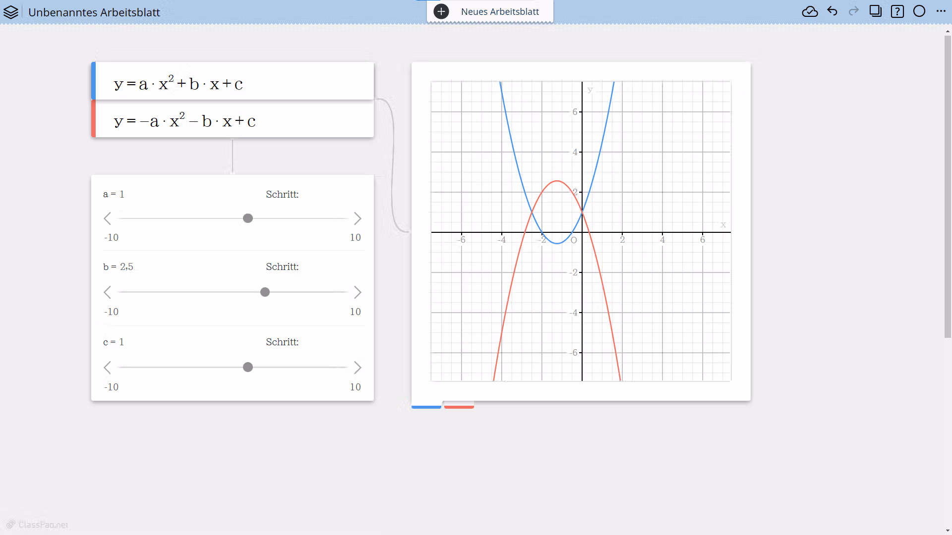Dieser Sticky ist der Funktionsplotter von ClassPad Math. Funktionen können grafisch dargestellt und auch grafisch gelöst werden, selbstverständlich auch Funktionen mit Parametern und Schiebereglern. Die Achsen des Koordinatensystems sind frei skalier- und beschriftbar, und es können sogar Hintergrundbilder eingefügt werden.