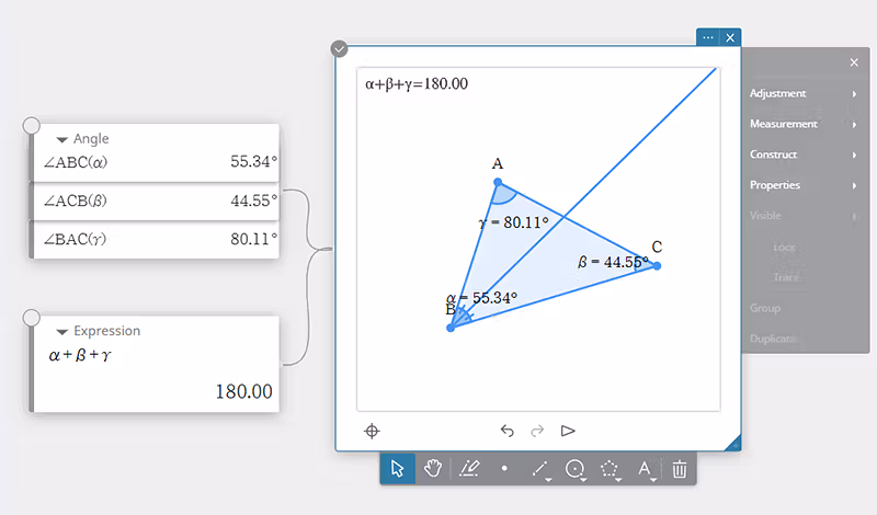 Dynamische Geometrie erlaubt es, mathematische Formen zu zeichnen und Konstruktionen wie Schnittpunkte, Spiegelachsen, Winkelhalbierende usw. zu erstellen. Das Geometrie-Sticky unterstützt auch die Erkennung von händisch gezeichneten Formen.