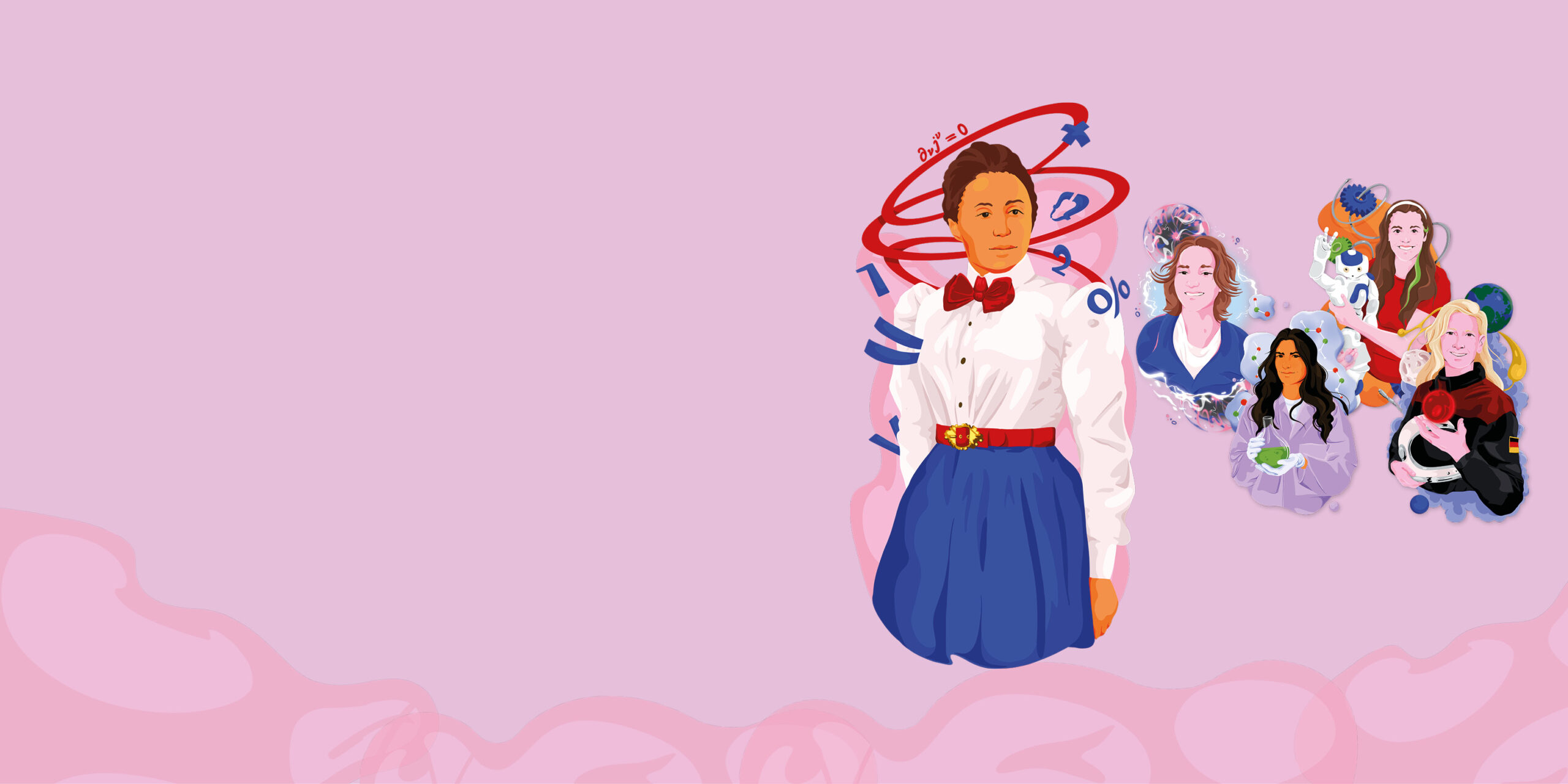Im Mittelpunkt steht die außergewöhnliche Mathematikerin Emmy Noether, deren Wirken bis heute die Wissenschaft prägt. Ergänzt wird die Ausstellung durch spannende Einblicke in die Lebenswege von Dr. Carmen Köhler, Sophie Charlotte Keunecke, Ida Hülsbusch und Mara Maier. Persönlich, nahbar und inspirierend zeigen sie, wie vielfältig und lebendig Wissenschaft sein kann.
